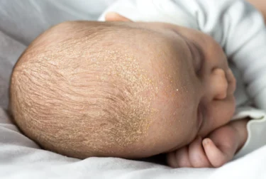 Cradle cap presents as greasy, yellowish, scaly or crusty patches. It is mainly seen on the scalp, but it may also affect the face, ears, and neck. Cradle cap is a common and normal condition in babies and is not painful or itchy (if it is, then you should see a doctor). It often resolves without treatment. For management, regular washing with baby shampoo and gentle brushing may help4.