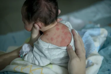 Baby skin rash refers to any noticeable change in the colour, appearance, or texture of a baby’s skin. It may appear suddenly or develop gradually and can vary in how it looks and feels.