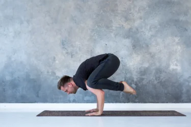 Bakasana is classified as an intermediate arm balance yoga pose. You may practice Padmasana (cross-legged sitting pose) as one of the Bakasana preparatory poses2,3. Bakasana steps are listed below: