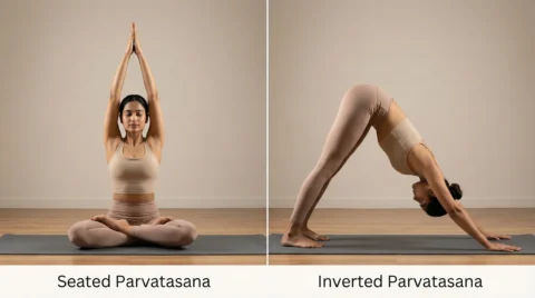 Parvatasana has two major variations: