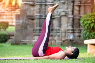 • Dwi pad Uttanpadasana: It is also called a two-legs raised pose. In this asana, both legs are raised above the ground at a 90° angle simultaneously. This may allow the toning and strengthening of abdominal and thigh muscles2.