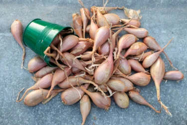 Red shallots get their name from their reddish or rose-coloured skin. They are usually larger than grey shallots. Their taste is mild and a bit sweeter than other types. That is why they are a versatile ingredient for many recipes.