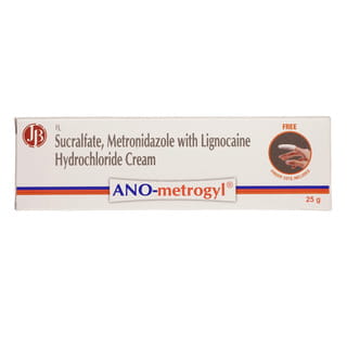 - Ano Metrogyl Tube Of 25gm Cream contains a combination of Lidocaine, Metronidazole and Sucralfate.