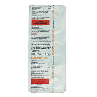 Bemzire R tablet is a combination medicine used to lower cholesterol and fats in the blood, especially “bad” LDL cholesterol. It contains two active ingredients, rosuvastatin and bempedoic acid, which work together to reduce cholesterol levels more effectively. This medicine is prescribed for people with high cholesterol and mixed dyslipidaemia and helps reduce the risk of heart diseases such as heart attacks and strokes.