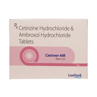y eyes, etc. Cetriver Am contains ambroxol and cetirizine as its active ingredients. It acts by inhibiting the release of the natural chemical substance Histamine responsible for the allergic condition also works by loosening the mucus, thus easing breathing. Cetriver Am Tablets may cause dizziness so be careful while driving or using heavy machines. Also, avoid smoking and avoid exposure to dust and pollution. You should take this medicine regularly as per your physician's instructions.