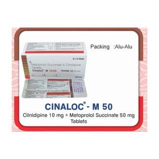 Cinaloc M Tablet is used to treat high blood pressure and various other heart-related conditions such as heart failure, preventing further complications. It contains a combination of metoprolol and c