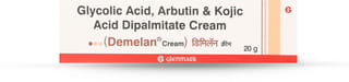 - Demelan cream is a combination medicine that contains arbutin, glycolic acid, and kojic acid.