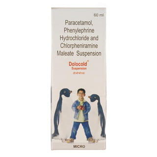 Dolocold Suspension is a combination medicine used for temporary relief from cough, throat irritation, fever, sneezing & stuffed nose due to an allergy or cold. It contains a combination of paracetam