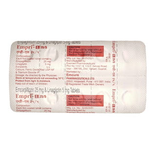 Fulfillment Information: Empri L 25/5mg Strip Of 10 Tablets will be delivered by a licensed retail pharmacy nearest to your location. Order acceptance and fulfillment are dependent upon the verification of your doctor's valid prescription (where applicable) and the current stock of this medicine.