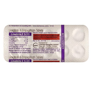 iciently, thereby lowering blood sugar levels. You can take it with or without food at any time of day, but for best results, try to take it at the same time every day. Your doctor will determine the specific dosage for you. Do not stop taking this medication suddenly without consulting your doctor, as this can cause your blood sugar to spike, leading to serious complications like kidney damage or blindness. Common side effects of Linabite E Tablet include urinary tract infections, nasopharyngitis, and upper respiratory tract infections. Before starting this medication, tell your doctor if you have kidney or liver problems, a urinary tract infection, or if you're taking diuretics (water pills). If you're pregnant or breastfeeding, discuss use with your doctor. It's best to limit alcohol while on this medication, as it might increase specific side effects. Remember to monitor your blood sugar levels regularly throughout your treatment.