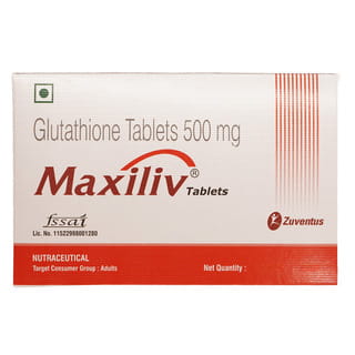 Maxiliv tablet is prescribed when your body does not receive enough of the natural substance called glutathione from your diet or when there is an increased need for it. This medicine is also used to treat specific conditions, including liver problems caused by alcohol, liver cirrhosis (scarring of the liver), liver damage in individuals with both HIV and hepatitis C, and inflammation of the stomach lining (gastritis).