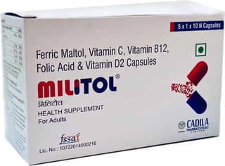 | Contains | Vitamin C / Ascorbic Acid(65.0 Mg)+Elemental Iron(29.0 Mg)+Vitamin B9 / Folic Acid / Folate(129.0 Mcg)+Vitamin D2 / Ergocalciferol(600.0 Iu)+Vitamin B12 / Mecobalamin / Cynocobalamin / Methylcobalamin(2.2 Mcg) |
