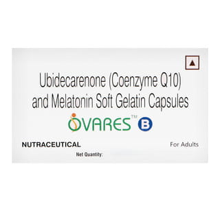 Ovares B softgel capsule is a dietary supplement that supports healthy sleep patterns and protects the body from oxidative stress. It contains Coenzyme Q10 (Ubidecarenone), a naturally occurring vitamin-like substance, along with Melatonin, a hormone that helps regulate the sleep–wake cycle.