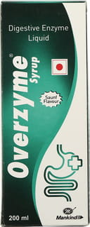 Overzyme syrup is a nutraceutical preparation containing digestive enzymes. Overzyme syrup is used for relieving indigestion, gas, bloating and fullness. It contains a combination of three enzymes namely diastase, pepsin and alpha-galactosidase. It stimulates carbohydrate and protein digestion and aids the absorption of the essential nutrients in the intestine. Overzyme syrup is also given to individuals who are not able to produce these hormones naturally in the body. Overzyme syrup should be taken as directed by your doctor.