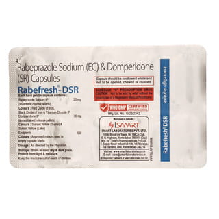 heartburn, belching, nausea, and chest pain. It is a combination medicine containing rabeprazole & domperidone. It works by reducing the amount of acid produced in the stomach and improves the motility in the gut, thus, reducing the backflow of stomach content into the food pipe. Before starting Rabefresh DSR capsule, inform the doctor if you are pregnant, planning a pregnancy or breastfeeding and about your detailed medical history.