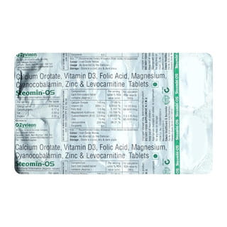 | Contains | Calcium Orotate(740.0 Mg)+Vitamin B9 / Folic Acid / Folate(1.5 Mg)+Magnesium Hydroxide(150.0 Mg)+Vitamin B12 / Mecobalamin / Cynocobalamin / Methylcobalamin(2.2 Mcg)+Zinc(15.0 Mg)+Vitamin D3 / Cholecalciferol(2000.0 Iu)+L-Carnitine / Levocarnitine / Carnitine(250.0 Mg) |
