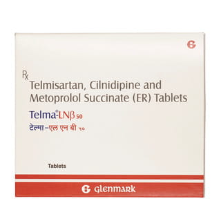 Telma Lnb tablet is used to treat high blood pressure (hypertension). It contains a combination of three antihypertensive medications: metoprolol, cilnidipine, and telmisartan. This medication is prescribed when a single medication is not sufficient to manage high blood pressure effectively.