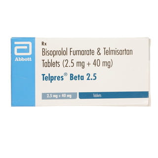 Telpres Beta tablet is a combined medication that contains bisoprolol and telmisartan as active ingredients. It is used for treating high blood pressure and reducing the risk of heart-related conditions such as stroke, heart attack, and angina (chest pain caused by reduced blood flow to the heart). It works by relaxing the blood vessels and blocking the action of an enzyme that causes blood vessel constriction. It helps to slow the heart rate and relax the blood vessels, further aiding in the reduction of high blood pressure.