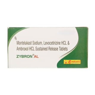 Zybron Al Tablet contains a combination of montelukast, levocetirizine and ambroxol as active substances. It is used to treat symptoms of allergic rhinitis such as a runny or stuffy nose, sneezing, r